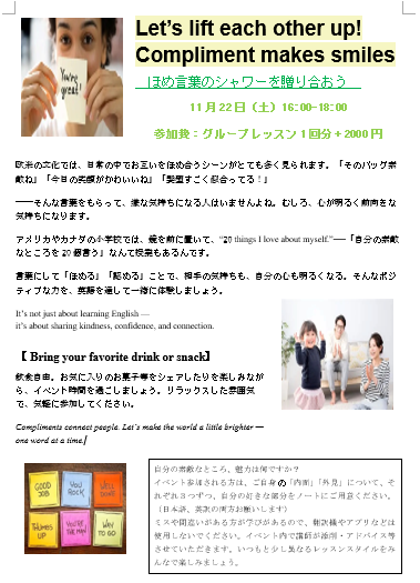 誉め言葉シャワーを浴び合おう、11/22